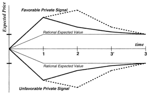 Figure 7: Divergence & convergence of expected prices under behavioral effects
