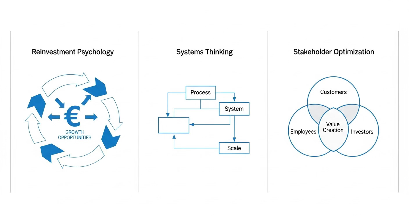 For family businesses: Look for generational thinking patterns. Second and third-generation leaders often demonstrate superior compound psychology because they inherited systematic thinking rather than building from personal drive.