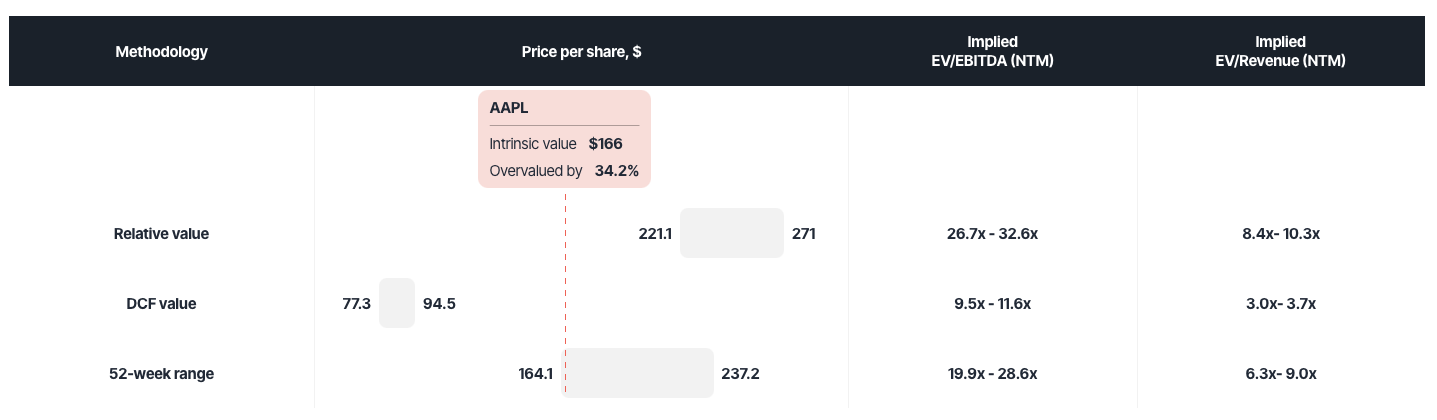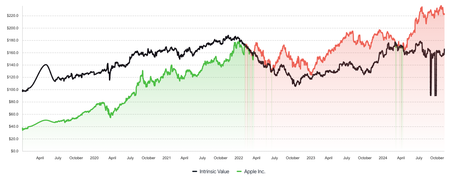 So is Apple overvalued or not? Currently Apple trades at 226 USD. However, intrinsic value of Apple is 166 USD.