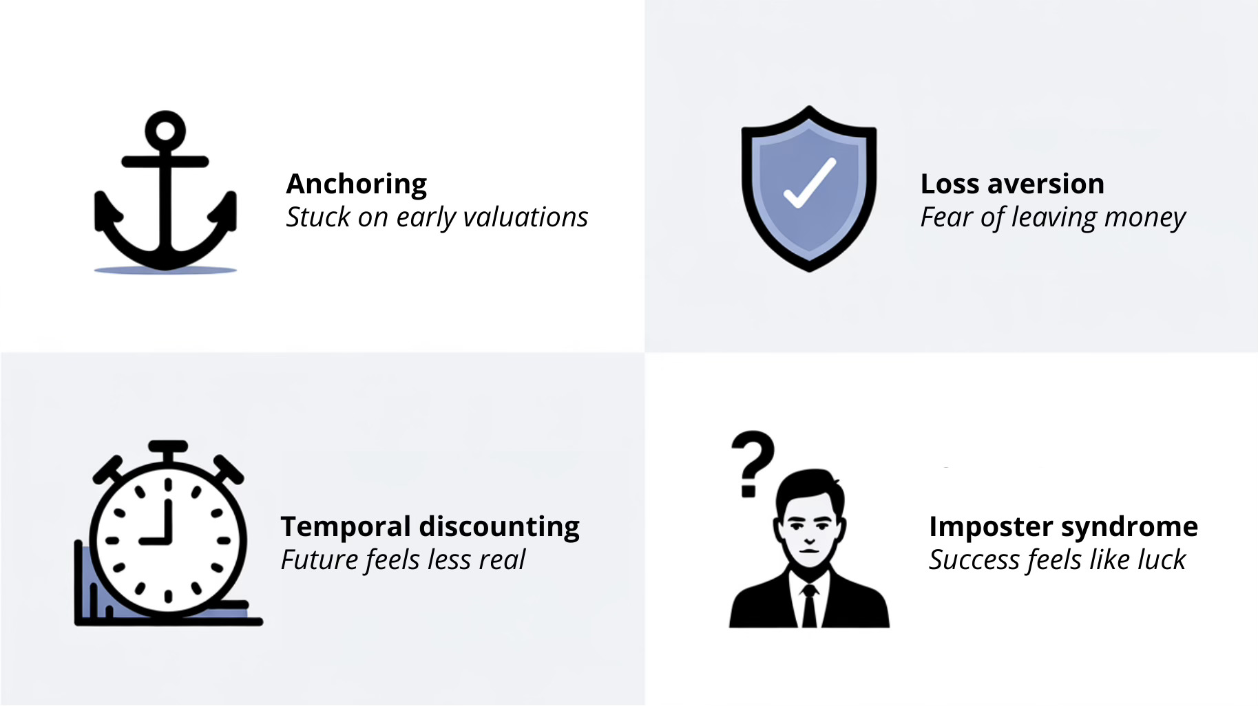 These biases compound when founders face transition decisions, creating systematic undervaluation that persists even when presented with market evidence.