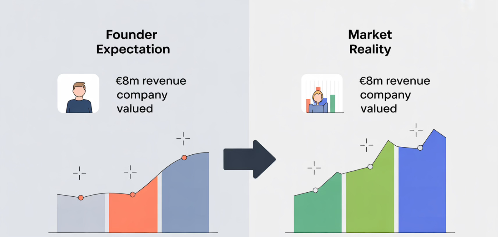Most successful founders I've worked with share a peculiar trait: they systematically undervalue their own businesses when it comes time to sell. Consider a software founder who built his company to €8 million in annual revenue with 85% gross margins and sticky customer contracts. When evaluating potential exit scenarios, he estimated "maybe 2-3x revenue if we're lucky."